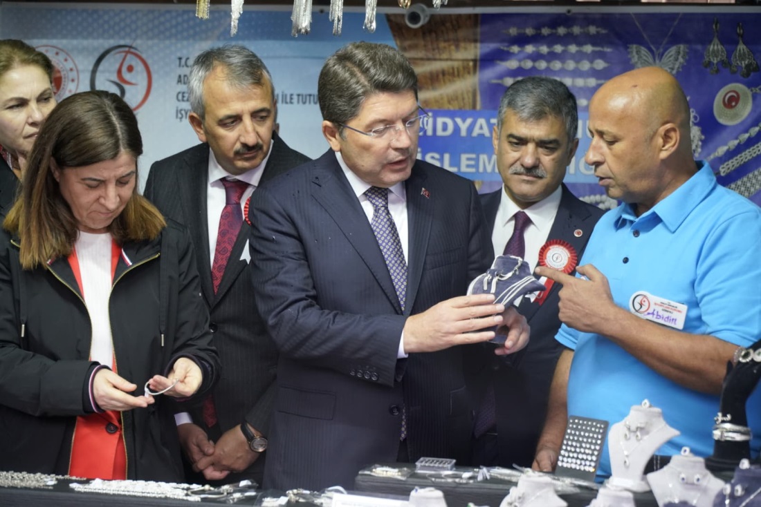 Bakan Tunç, işyurtlarında üretimin hiç durmadığını, birer fabrika gibi çalıştığını ve buradan üretilen ürünlerin satışından elde edilen gelirin de adalet hizmetlerine harcandığını ifade etti.